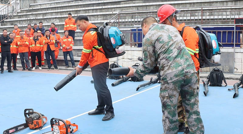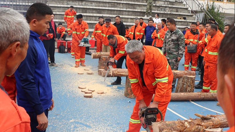 在实战演练现场,无人机飞行表演环节亮点十足。工作人员熟练操控无人机优选策略,在模拟林区上空精准完成巡航侦察、火情监测、热源探测及空中喊话预警等多项科目,以科技赋能筑牢森林防火“空中防线”;另一边,风力灭火机、油锯实操考核同步开展,各村选派的参训队员精神饱满、动作娴熟,有条不紊地完成模拟扑火、开辟防火隔离带等实战化任务,充分展现了过硬的应急处置能力与协同作战水平。
