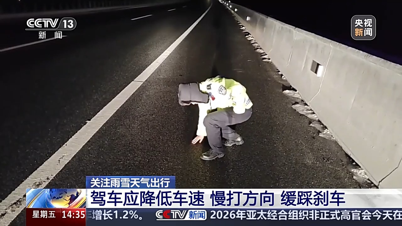 巩建国:对于冬季容易出现的暗冰现象,要提前做好预判,尤其是要注意在桥梁高架隧道的出入口以及背阴路段。驾驶人要提前做好减速,保持匀速直线通过,避免急刹车、急转弯、急打方向盘。