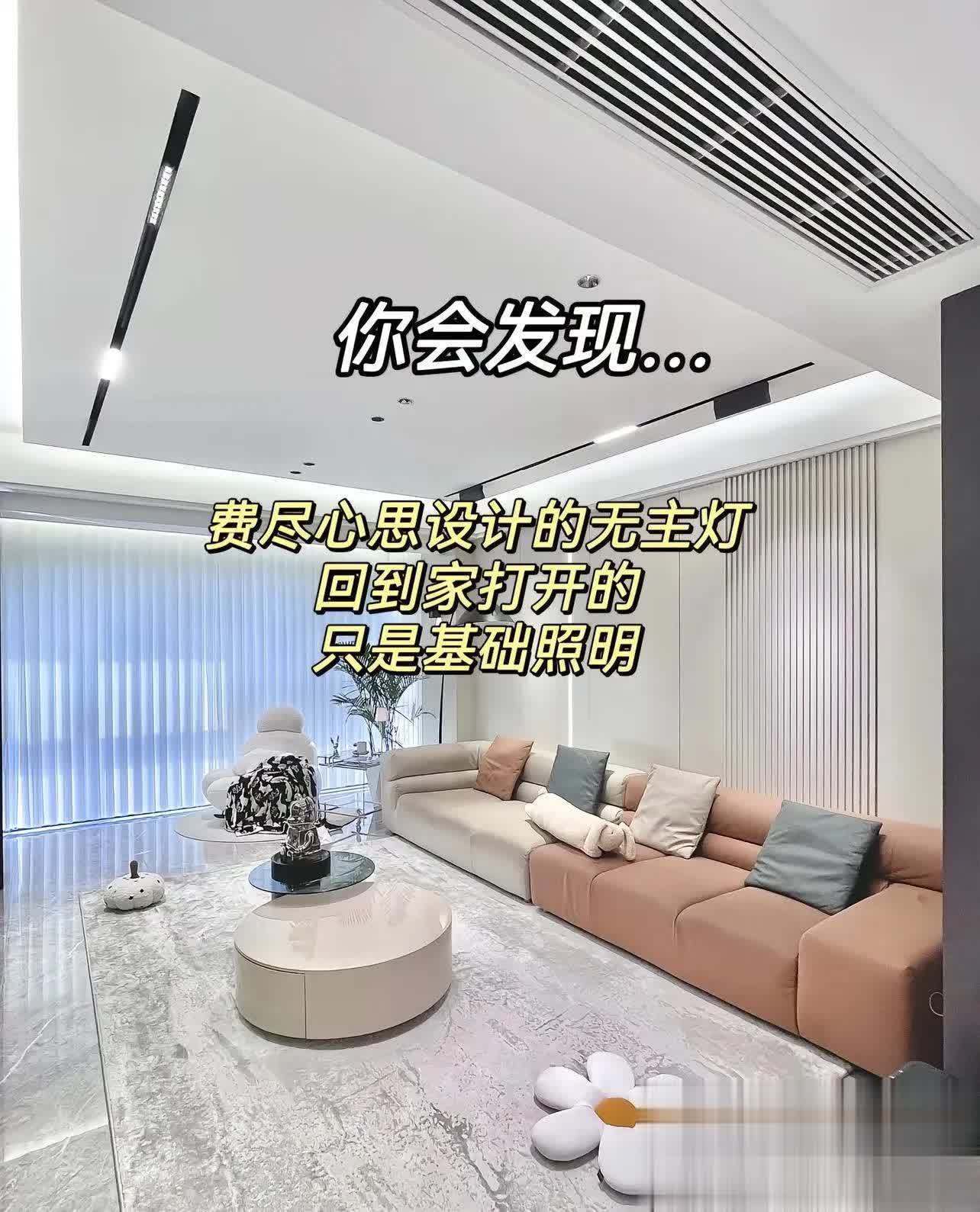 2. 复杂的无主灯设计:设计稿上光影层次很高级,实际生活中,你90%的时间只会打开最基础的那几盏。电路复杂、吊顶降低,简洁明亮比啥都强。