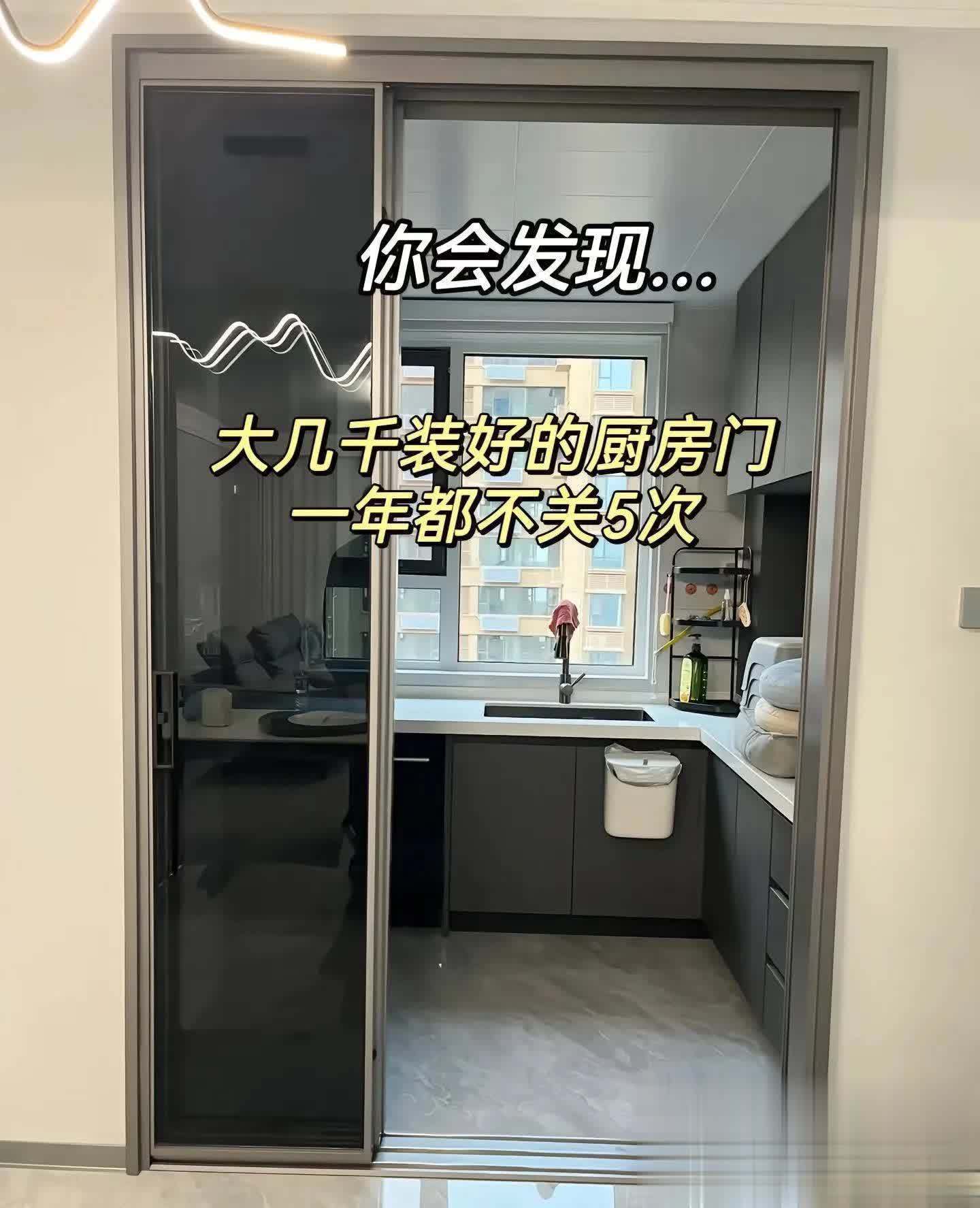 4. 厨房吊轨玻璃门:想着开放式又怕油烟,结果一年开不了几次。积灰难清理,轨道还容易坏。要么就彻底开放,要么做个极简推拉门。